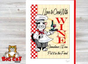 Cat Greeting Card – I LOVE TO COOK WITH WINE