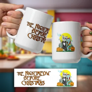 Cat Coffee Mug – NIGHTMEOW BEFORE CHRISTMAS- 15 OZ Ceramic