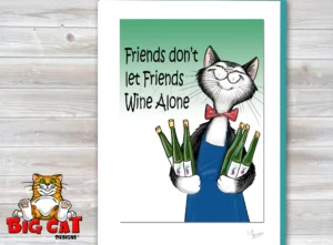 Cat Greeting Card – FRIENDS DONT LET FRIENDS WINE ALONE